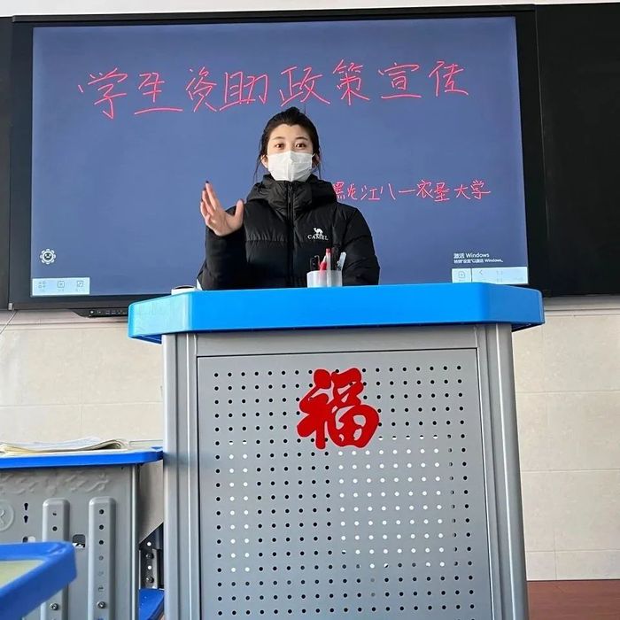 市场营销S22郑海擎 1月30日在五大连池第三高级中学面向高三员工开展资助政策宣传