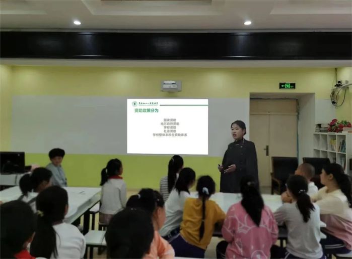 由学院国家奖学金、国家励志奖学金获得者市场营销S22班鲍禹萌同学、市场营销S22班郑海擎同学到家乡学校开展资助政策宣传活动,重点宣传国家资助、地方政府资助、学校资助和社会资助等学校整体本科生资助体系,让更多的员工了解资助政策,激发学习热情。