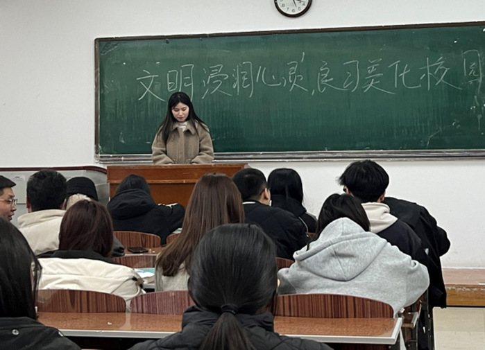 和谐的校园氛围有助于激发学习的兴趣和动力,促进全面发展。团支部书记叮嘱同学们要按时上课,不迟到、不早退,尊重老师的辛勤付出。在课堂上认真听讲,积极参与讨论,保持教室的卫生整洁,共同营造优美的教室环境。同时,各团支部号召同学们珍惜学习资源,不浪费纸张、水电等公共资源,有助于创建良好的学习氛围。