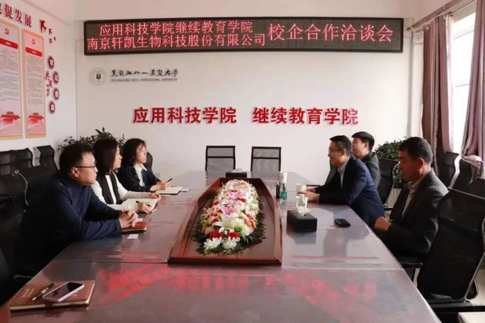 为进一步加强校企合作、深化产教融合,有效促进教育链、人才链、产业链、创新链有机衔接,打造应用技能型人才,4月23日上午,学院与南京轩凯生物科技股份有限公司开展了校企合作洽谈会。公司党委书记姜玉美、副书记刘芳芳、副经理丁国超,南京轩凯生物科技股份有限公司副总裁许宗奇、总经理郑凯涛出席会议。