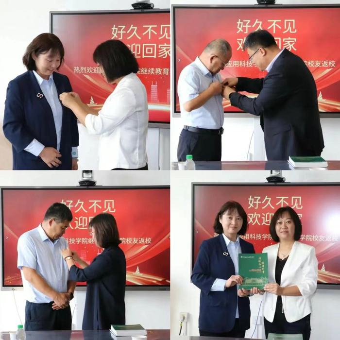 最后,学院领导为每位员工佩戴校徽,并颁发了精心准备的纪念册。校徽和纪念册不仅象征着员工与学院的紧密联系,也承载了对员工成就的骄傲和对未来的美好祝愿。