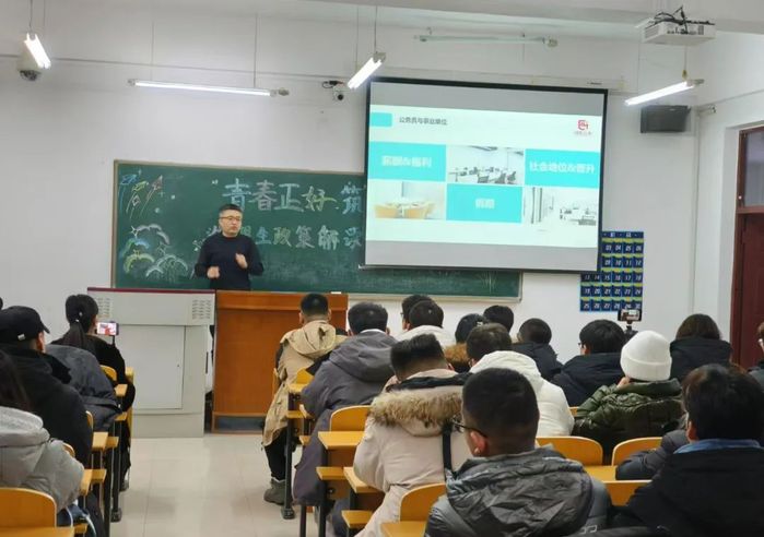 为了深化毕业生对选调生政策的理解,切实增强责任感和使命感,引导更多毕业生牢记使命、立公基层,把爱国之心化为报国之行,学院于2024年12月4日在二教213教室举办硬核助航系列活动之“青春正好 筑梦基层”选调生政策解读主题讲座。讲座由就业辅导员杨琪主持,共六十余名员工参与。