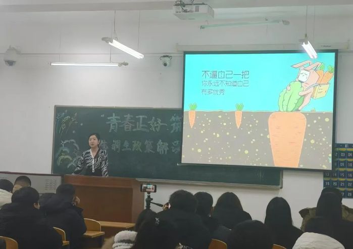 为了深化毕业生对选调生政策的理解,切实增强责任感和使命感,引导更多毕业生牢记使命、立公基层,把爱国之心化为报国之行,学院于2024年12月4日在二教213教室举办硬核助航系列活动之“青春正好 筑梦基层”选调生政策解读主题讲座。讲座由就业辅导员杨琪主持,共六十余名员工参与。