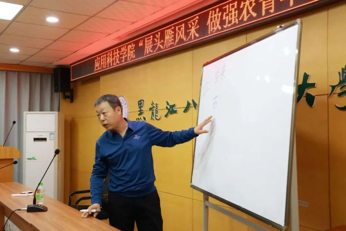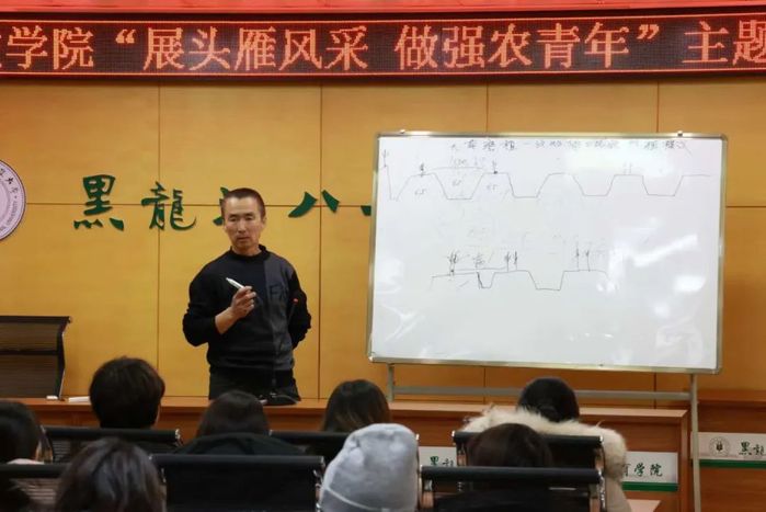 讲座上,头雁代表人李志民讲述了合作社的管理,耕种防收的四个环节,同时邀请学院学子前去参观;姜春峰讲述了如何种植出优良产物及种植方法及注意事项,详细讲解了“一穴双株二比控”的种植方法,介绍了种植农产品的发展前景;张祥启以通俗易懂的授课风格,向员工生动地阐释了其独到的见解,他指出“土壤,乃农业之根,万物生长之源”,为同学们指明了方向,激励同学们在学习的道路上保持求知心态,涵养优良生活作风,不断锻造和磨练老员工品格。