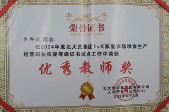 近日,学校在2024年度北大荒农垦集团“1+X”职业技能等级证书试点工作总结表彰中,荣获“优秀院校奖”、“优秀团队奖”、“创新团队奖”。经济管理学院张慧琴、动物科技学院韩欢胜、信息与电气工程学院齐邦建,三位老师荣获“优秀教师奖”。