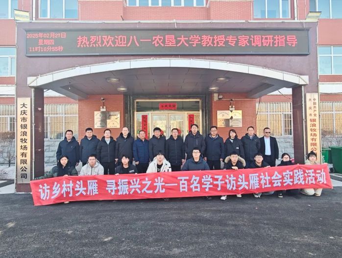 为深入挖掘乡村振兴实践中的“头雁”经验,激励青年学子投身基层建设,感受新时代农业企业创新发展脉搏,2月27日,学院“百名学子访头雁”社会实践团走进2024年“头雁”学员苏广宇就职单位--大庆市银浪牧场有限公司,通过实地调研、产业观摩、座谈交流、共话产业发展,与这家具有78年历史的国有企业展开深度对话,聆听其赓续红色基因、振兴乡村产业的奋斗故事,感受乡村振兴战略在基层的生动实践。
