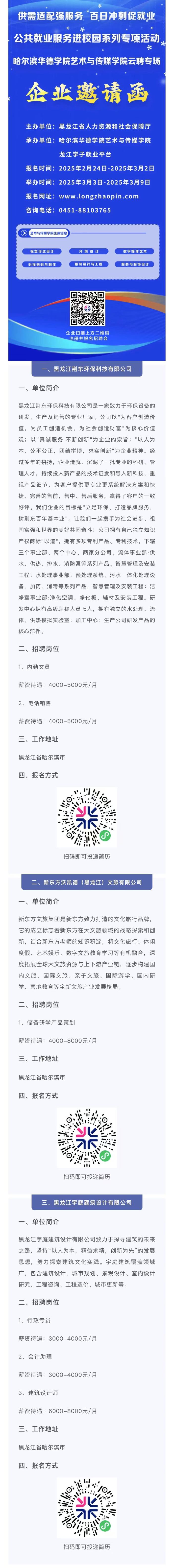 【技术岗、行政岗、财务岗】黑龙江荆东环保科技有限公司、新东方沃凯德(黑龙江)文旅有限公司、黑龙江宇庭建筑设计有限公司