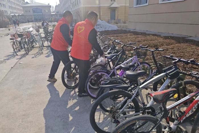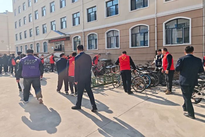 理论宣讲结束后,全体党员迅速投入校园文明实践行动。在第二项活动中,双方支部成员分为志愿服务小组,开展校园垃圾捡拾、自行车规范摆放等劳动实践。党员们身着志愿马甲,手持清洁工具,深入绿化带、教学楼周边等区域清理卫生死角,并对随意停放的单车进行有序归位,以实际行动践行雷锋“服务人民、助人为乐”的奉献精神。中储粮北方公司党员代表胥振华表示:“雷锋精神与粮食人‘宁流千滴汗,不坏一粒粮’的行业精神高度契合,我们要将这种精神转化为保障国家粮食安全的实际行动。”