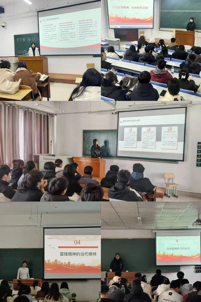 活动中,各班团支书详细介绍了雷锋同志的生平事迹,并引用习近平总书记的重要论述——“雷锋的名字家喻户晓,雷锋的事迹深入人心,雷锋精神滋养着一代代中华儿女的心灵”,系统阐释了雷锋精神“无私奉献、助人为乐、爱岗敬业”的核心要义。通过剖析郭明义、白方礼、张桂梅等新时代雷锋式榜样的感人事迹,生动展现了雷锋精神在新时代的实践价值。在讨论环节,同学们踊跃发言,结合自身生活实际,畅谈对雷锋精神的理解和感悟。