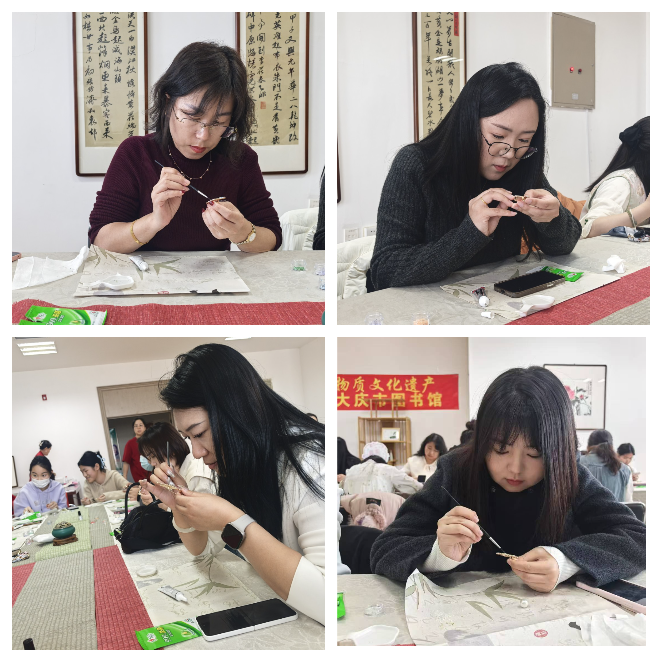 为庆祝第115个“三八”国际劳动妇女节,丰富学院女教工业余文化生活,感受传统文化的魅力,3月8日,学院组织女教工前往大庆市图书馆,参加了“螺钿流光 芳华璀璨”非遗手作活动。