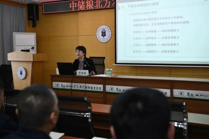 为深入贯彻落实国家粮食安全战略,加快农业技术人才队伍建设,中储粮北方农业开发有限公司依托集团继续教育学院举办农业技术骨干培训班。培训期间,学院在教学安排上周密部署,科学设计,突出重点,强调实用性和前沿性,极尽所能选择优秀团队开展教学,李翠霞董事长亲自为全体学员讲授《企业品牌建设能力》,学员聚精会神、专心致志听讲,认真做笔记;课余时,勤奋研读学习资料,深入进行学习交流,分享工作经验,讨论瓶颈问题。通过说困难、讲疑惑,谈问题、求解答,气氛和谐融洽。