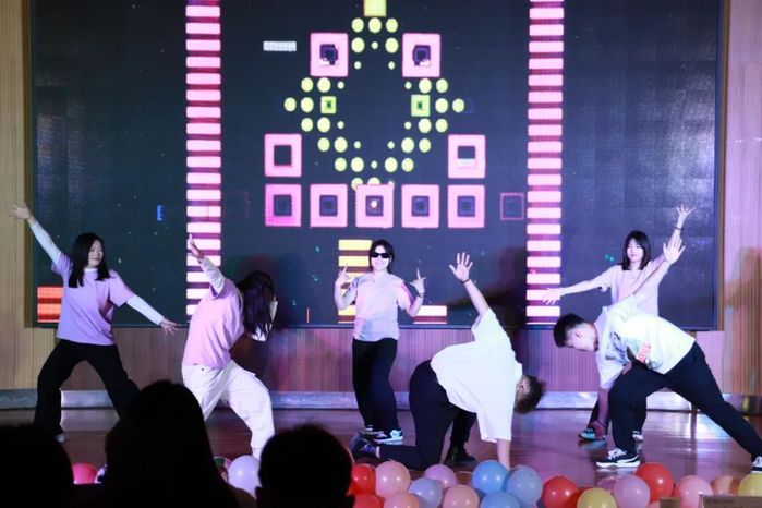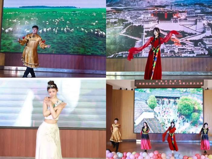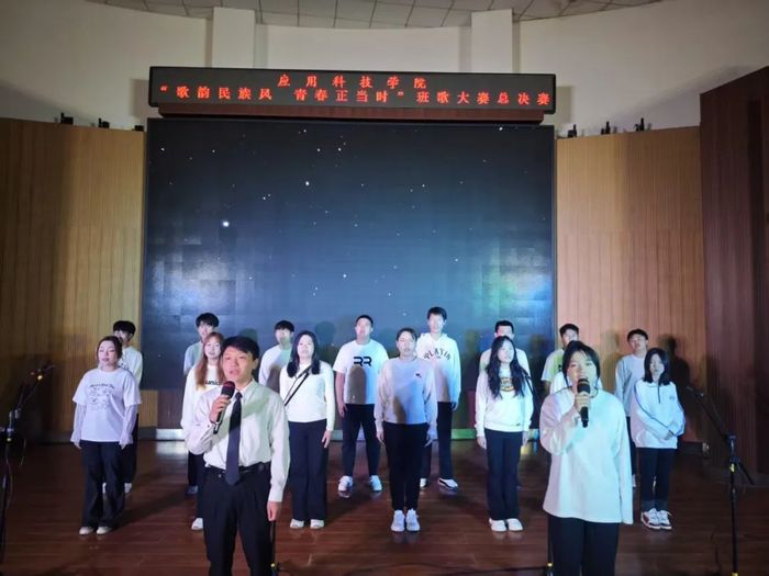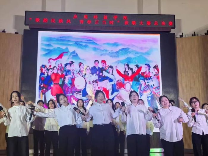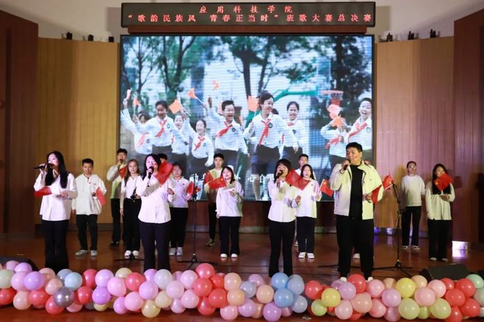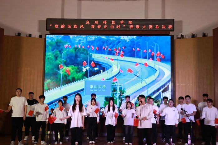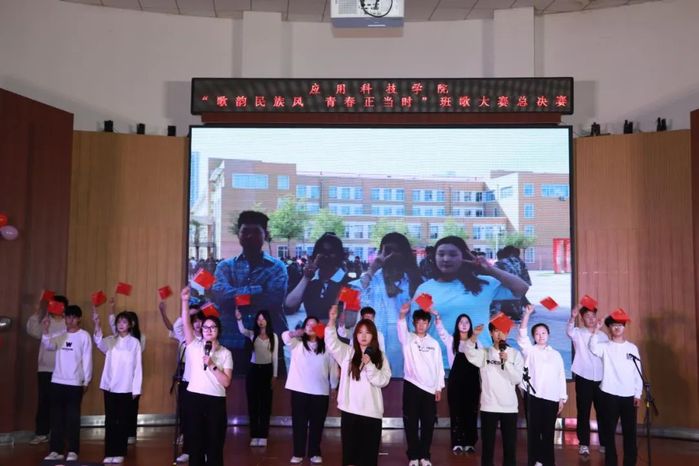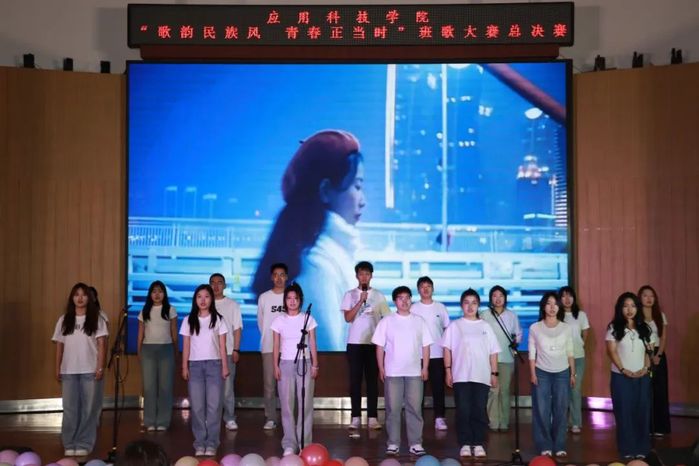 各个班级经过初赛的激烈角逐,共有11个班级脱颖而出,成功晋级总决赛。参赛班级分为三组进行表演,通过充满活力的开场舞《你要跳舞吗》拉开帷幕,灵动的舞姿瞬间点燃了现场气氛。随后,四队参赛班级依次登场完成第一组的演唱,他们用美妙的歌声、别出心裁的表演,将对民族文化的热爱与青春的朝气展现得淋漓尽致。