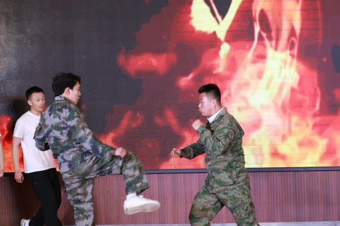 第二组参赛班级登场前,由学院退役士兵和校武术队带来《武术表演》,火热的氛围激发了各参赛班级的斗志,随后三个班级开始演唱,他们用充满感染力的表演,生动诠释了民族团结的重要意义,展现了青年学子对祖国的热爱。