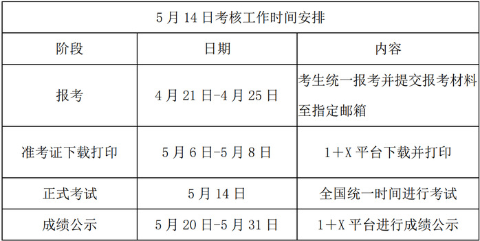 本校考核时间定于2024年5月14日,考核为上机考试,理论与实训联考(高级150分钟)。具体时间安排如下: