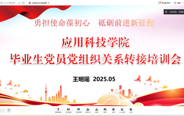 为确保党员组织关系转接“不断线”,学院召开专题培训会,详细讲解党组织关系转接流程及注意事项,通过“一对一”答疑确保转接工作规范高效,为毕业生党员融入新组织、奔赴新岗位提供坚实保障。