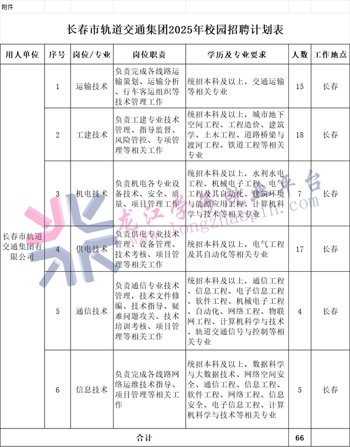 拟校园招聘共计693人,其中专业技术类岗位66人,生产类岗位627人。具体招聘岗位和任职条件详见《长春市轨道交通集团2025年校园招聘计划表》(附件)。