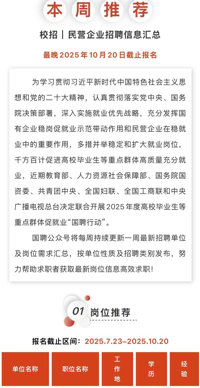 招聘信息 | 民营企业招聘信息汇总 7月(第四期)
