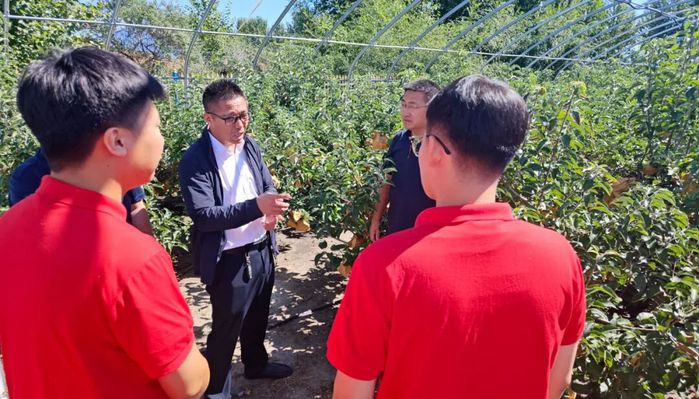 座谈后,师生们实地参观了永胜村的核心产业项目——果蔬大棚示范基地。大棚内番茄、香瓜等作物长势喜人,村民正忙碌采摘。孙殿祥现场解说:“这些大棚由村集体投入28万元建成,年利润2万元,吸纳了10名村民稳定就业。我们还在闲置期轮作蒲公英等作物,探索‘党建+庭院经济’模式,帮助村民拓宽增收渠道。”员工们亲身参与番茄采摘,聆听村民讲述“家门口就业”的故事,深刻体会到产业振兴的活力。员工感慨:“大棚不仅是经济引擎,更是村民的‘致富棚’。我学到了党建引领如何转化为实实在在的民生福祉。”
