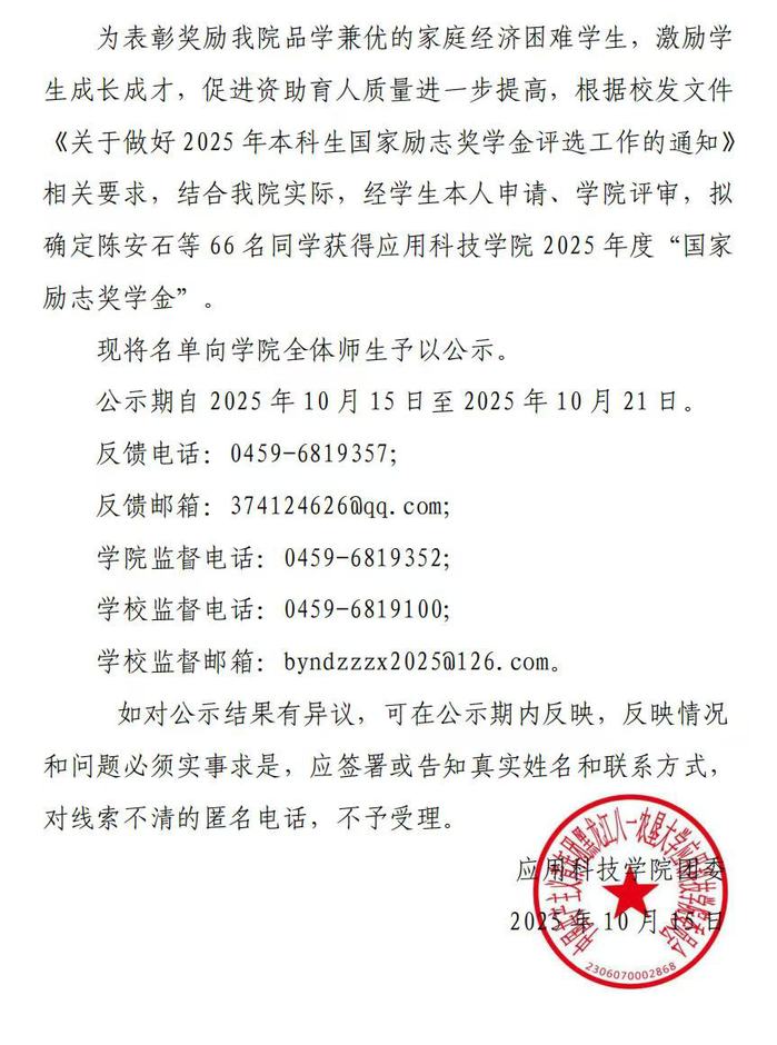 best365中国官方网站2024-2025 学年国家励志奖学金拟推荐名单公示