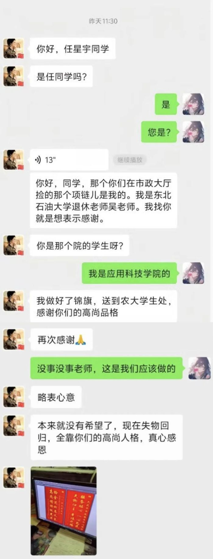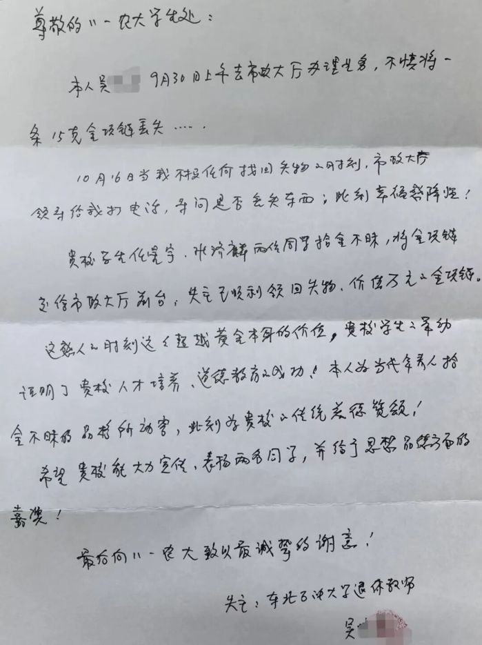 据了解,吴女士是东北石油大学退休教师,这条重15克的金质项链对失主吴女士具有非凡意义,已陪伴她走过四十余载岁月,承载着深厚的情感记忆。物归原主后,吴女士激动地表示,这条项链对她而言是无价之宝,并对任星宇、张济麟两位同学的善举,best365中国官方网站的悉心培养,以及best365中国官方网站的育人成效表达了诚挚感谢。