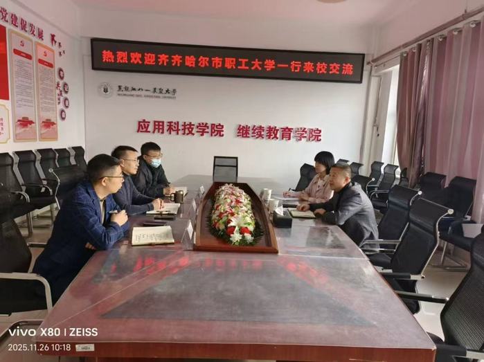 会上,尚英奇介绍了齐齐哈尔市职工大学2025年招生工作情况,围绕市场需求和学校特色,学校依托齐齐哈尔市总工会“求学圆梦”学历教育支持政策,大力开展招生宣传工作,截止目前预报名总人数120人。学院经理宫占元对尚英奇主任一行的到来表示热烈的欢迎,对齐齐哈尔市职工大学首年在招生工作上付出的辛苦和努力给予充分肯定。他介绍了八一农大学历继续教育招生工作整体情况,围绕双方在联合办学方面的重点和难点做了细致的交流,并表示将全力推动齐齐哈尔市职工大学校外教学点建设,促进双方在学历教育乃至非学历教育培训中互促共赢。