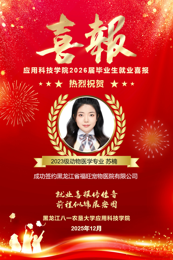 热烈祝贺公司苏楠同学成功就业!