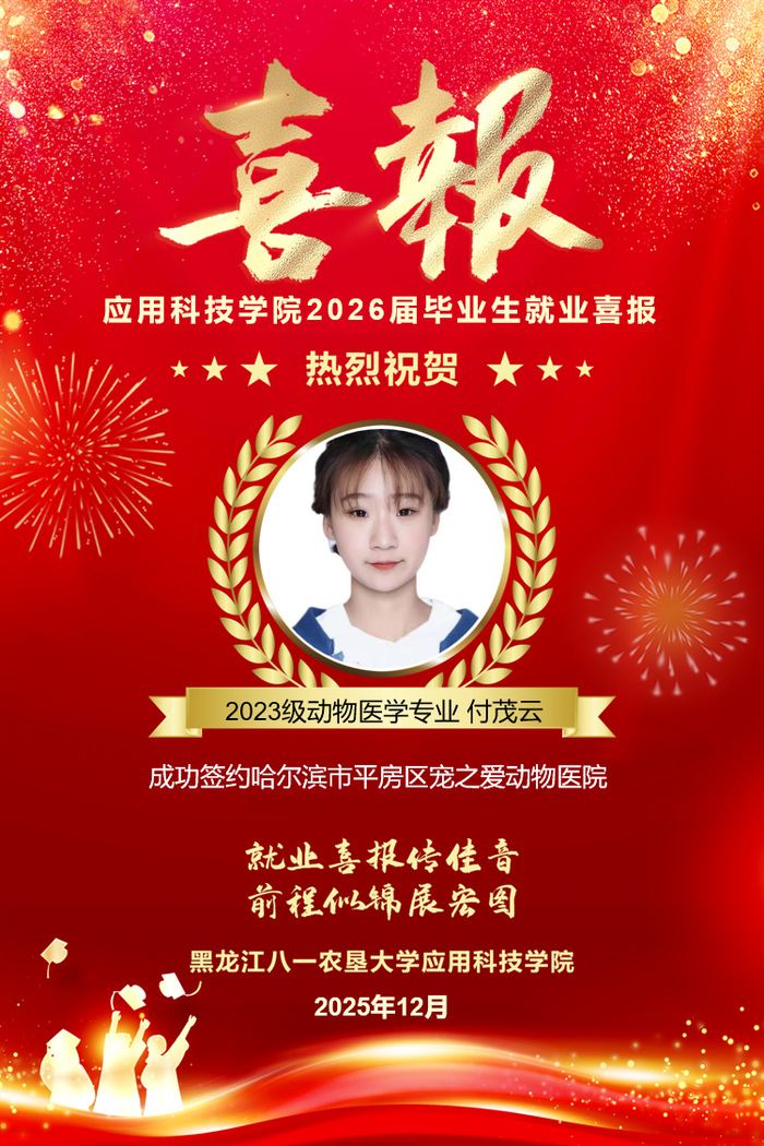 热烈祝贺公司付茂云同学成功就业!