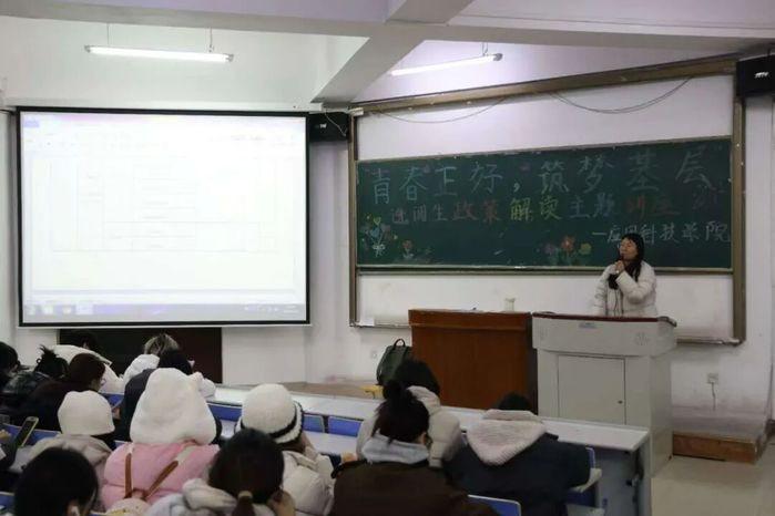 为引导员工树立扎根基层、服务社会的职业价值观,增进员工对国家基层就业政策的了解,12月4日下午,学院在二教214教室成功举办了“青春正好 筑梦基层”选调生政策解读主题讲座。本次讲座由学院就业辅导员杨琪与2016届食品科学与工程专业员工郭道博共同主讲,约150名同学到场参与。
