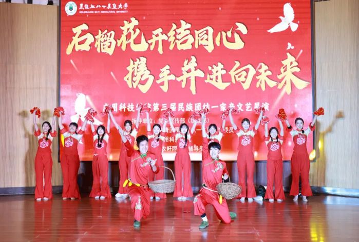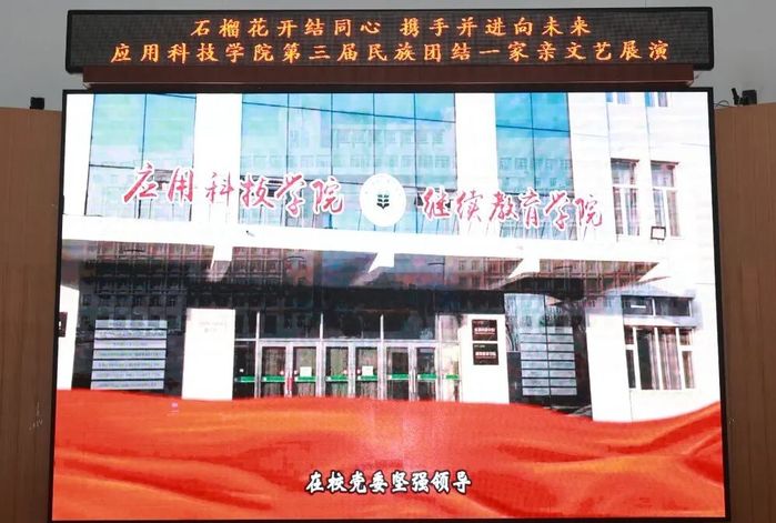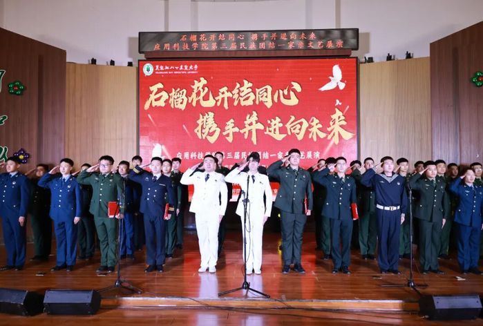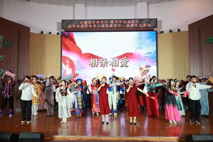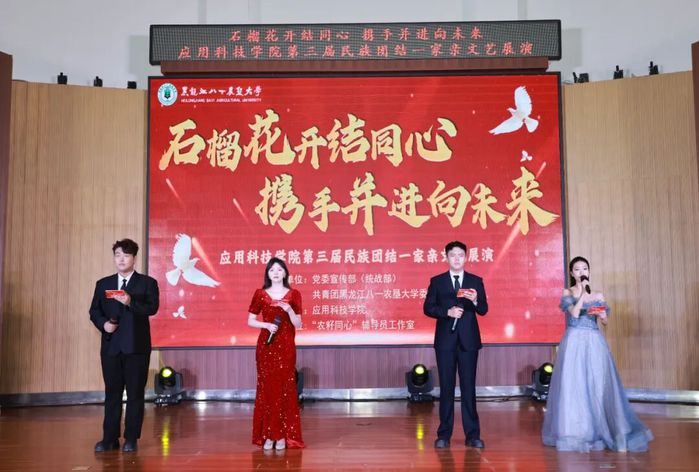 为深入推进民族团结进步教育,铸牢中华民族共同体意识,学院第三届“民族团结一家亲”文艺展演在老员工活动中心隆重举行。展演以“石榴花开结同心 携手并进向未来”为主题,通过丰富多彩的艺术表演形式,展现了各民族师生团结互助、携手奋进的精神风貌,为现场观众呈现了一场精彩纷呈的文化盛宴。校人才招聘处处长宋清萍,应用科技公司党委书记高波、经理宫占元、副书记刘芳芳、公司党委宣传统战部副部长郭丹,公司党委员工工作部副部长高阳,黑龙江省水利学校普职融通教学部年级主任王焓,校团委组宣部部长路之阳、各学院团委书记、辅导员老师以及400余名学子共同观看演出。