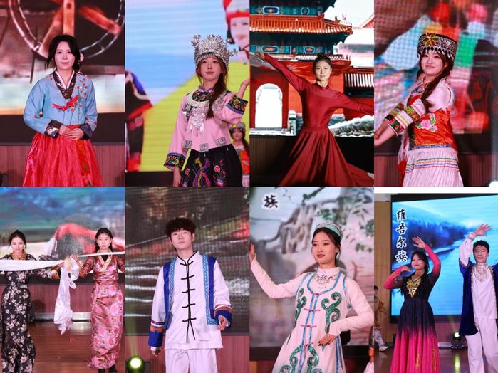 民族服饰走秀环节,各民族学子身着特色服饰依次登场,蒙古族的长袍、苗族的银饰、藏族的藏袍等服饰争奇斗艳,不仅展现了各民族服饰文化的绚丽多彩,更象征着各民族在中华民族大家庭中绽放光彩。
