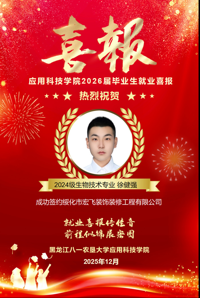 热烈祝贺学院徐健强同学成功就业!