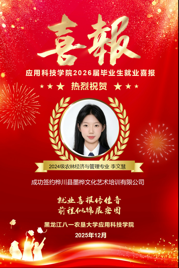 热烈祝贺学院李文慧同学成功就业!