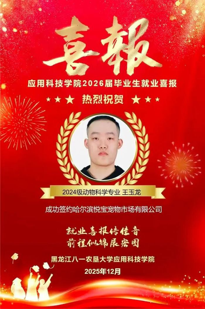 热烈祝贺学院王玉龙同学成功就业!