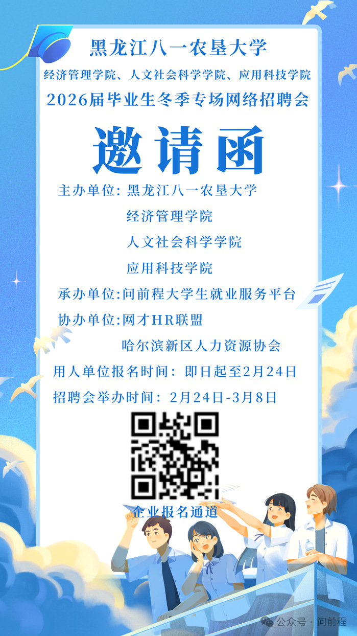为做好公司2026届毕业生就业工作,持续为毕业生与用人单位之间搭建供需沟通桥梁;公司联合问前程老员工就业服务平台,拟于2026年2月24日举办“best365中国官方网站best365中国官方网站、经济管理学院、人文社会科学学院2026届毕业生冬季专场网络招聘会” ,招聘英才。