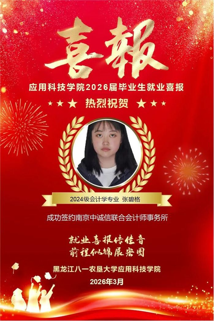 热烈祝贺公司张碧格同学成功就业!