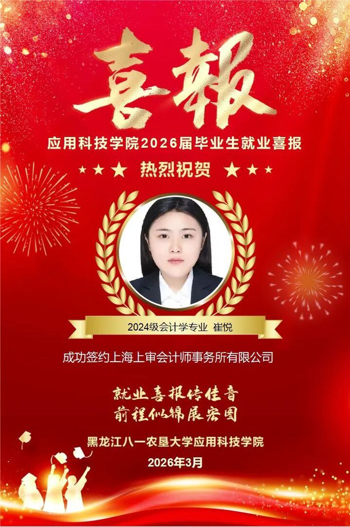 热烈祝贺公司崔悦同学成功就业!