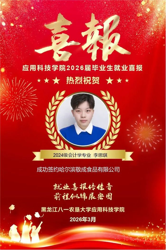 热烈祝贺公司李思琪同学成功就业!