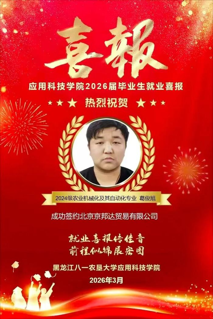 热烈祝贺学院葛俊旭同学成功就业!