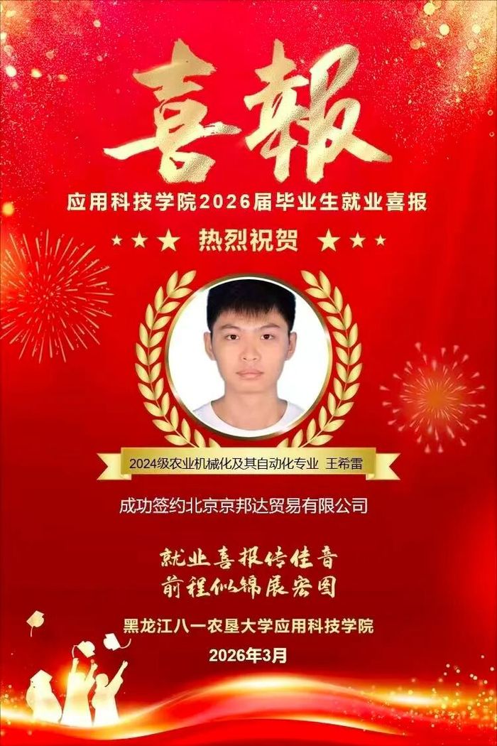 热烈祝贺学院王希雷同学成功就业!