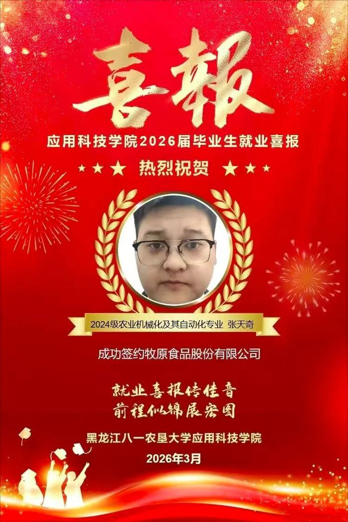 热烈祝贺学院张天奇同学成功就业!