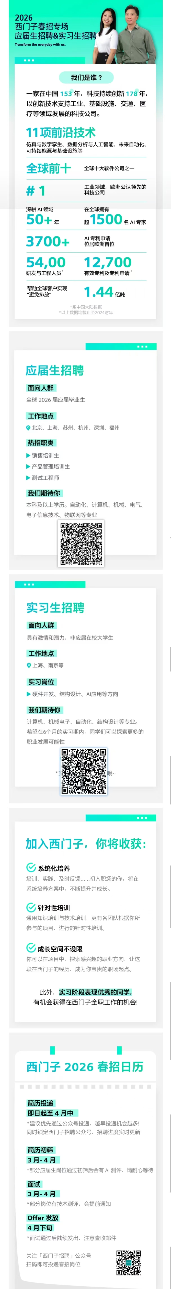 招聘信息 | 西门子2026春季校园招聘&实习生招聘