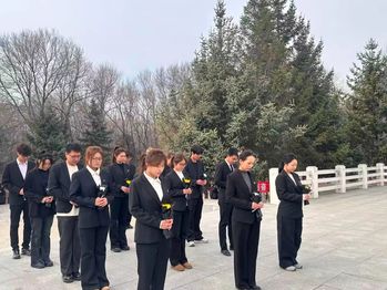 4月3日清晨,辅导员王明瑶组织员工代表在王震将军像前开展“赓续红色血脉 争做时代新人”清明节祭奠王震将军主题团日活动。活动现场庄严肃穆,全体人员肃立默哀一分钟,深切追思王震将军为国家独立、民族解放和边疆建设建立的不朽功勋,追忆其浴血征战、垦荒南泥湾、进军新疆的光辉历程。民族员工代表与退役士兵员工代表深情朗诵,诠释自力更生、艰苦奋斗、忠诚担当的崇高精神,全体师生缓步敬献鲜花,传递对革命先辈的深切告慰与敬仰。